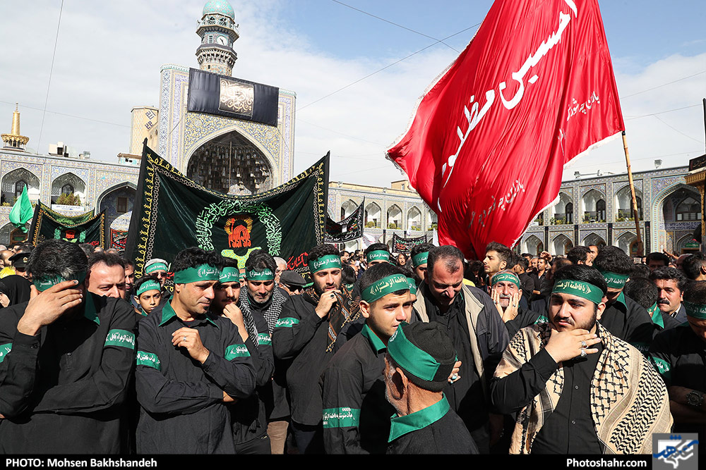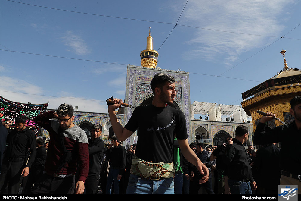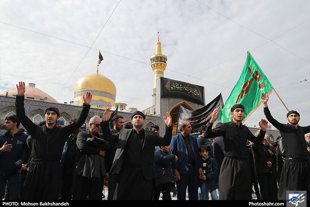 همزمان با 28 صفر و سالروز رحلت پیامبر اکرم(ص) و شهادت امام حسن مجتبی(ع)، دسته های عزاداری برای عرض تسلیت در حرم مطهر امام رضا (ع) به عزاداری پرداختند.