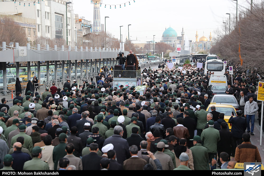 پیکر سردار قدرت الله منصوری فرمانده قرارگاه منطقه ای ثامن الائمه نیروی زمینی سپاه پاسداران انقلاب اسلامی صبح امروز دوشنبه از محل مهدیه مشهد تا حرم مطهر رضوی تشییع شد.