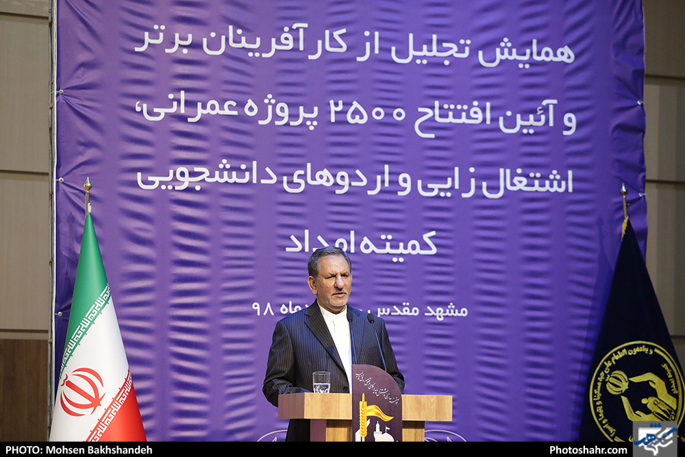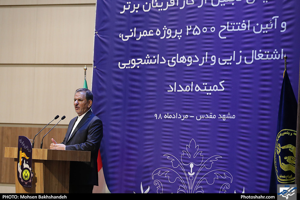مراسم افتتاح دو هزار و 500 طرح عمرانی و اشتغال کمیته امداد خراسان رضوی با حضور اسحاق جهانگیری معاون اول رئیس جمهوری در مشهد برگزار شد.