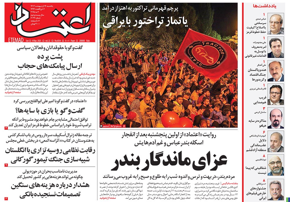 صفحه نخست روزنامه‌های کشور - یکشنبه ۱۴ اردیبهشت ۱۴۰۴