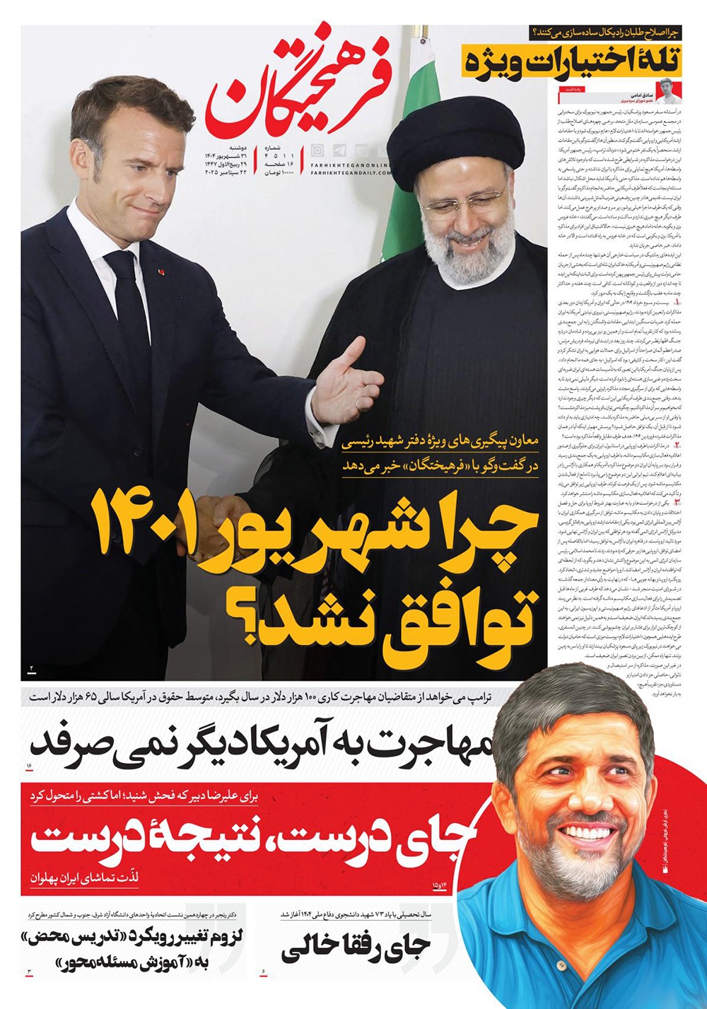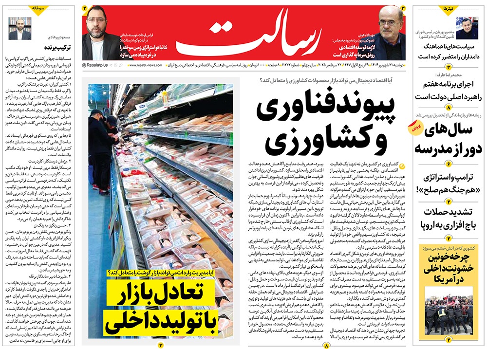 صفحه نخست روزنامه‌های کشور - دوشنبه ۳۱ شهریور ۱۴۰۴