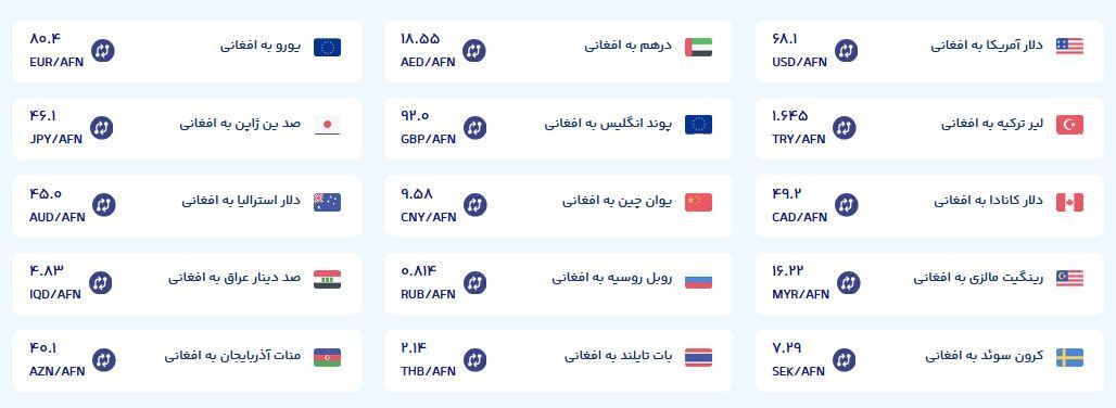 نرخ تبدیل ارز‌های مختلف به افغانی چنده؟