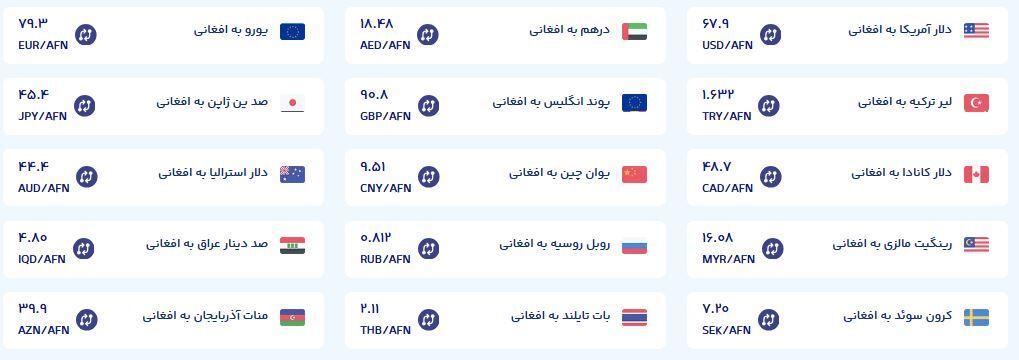 نرخ تبدیل ارز‌های مختلف به افغانی چنده؟