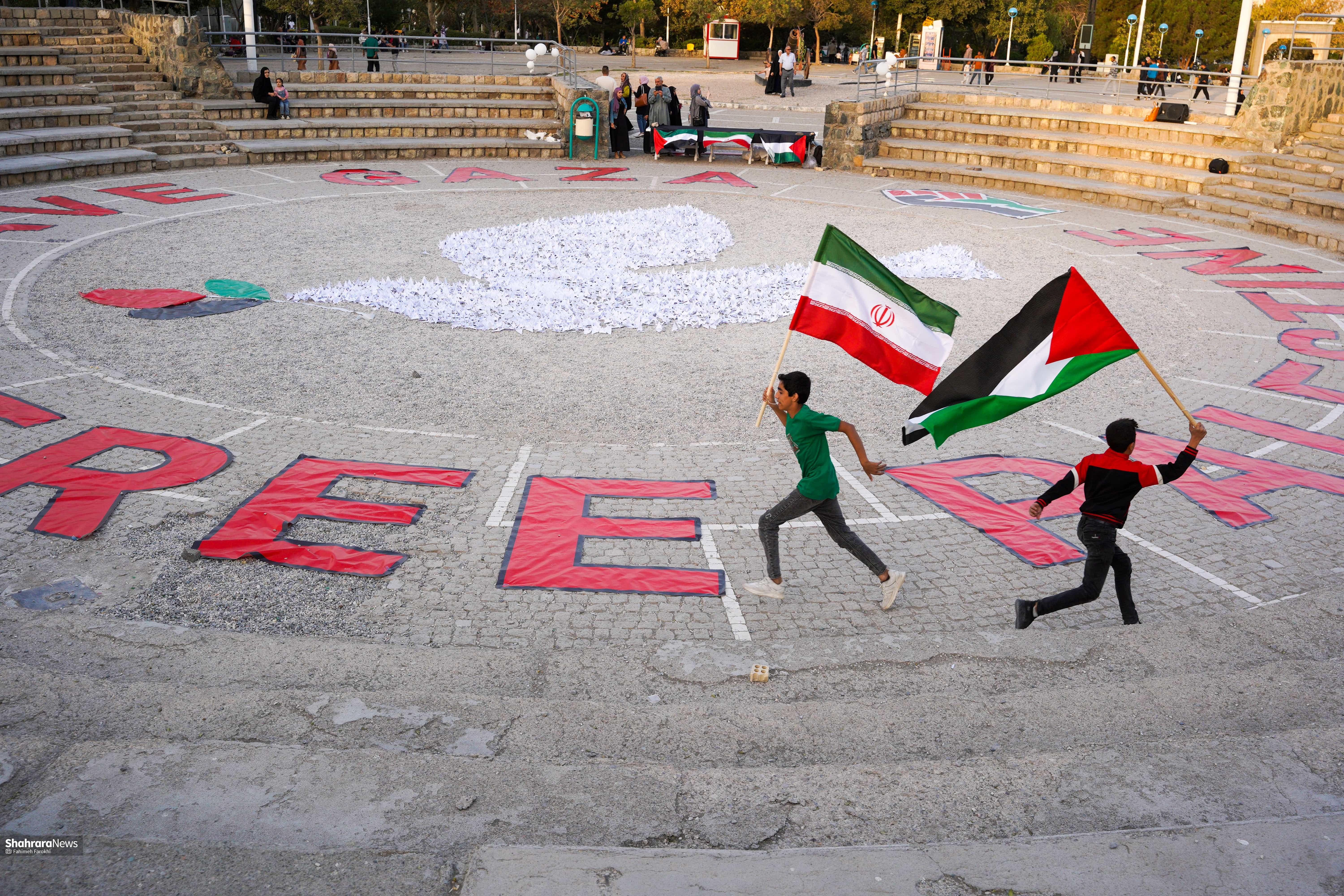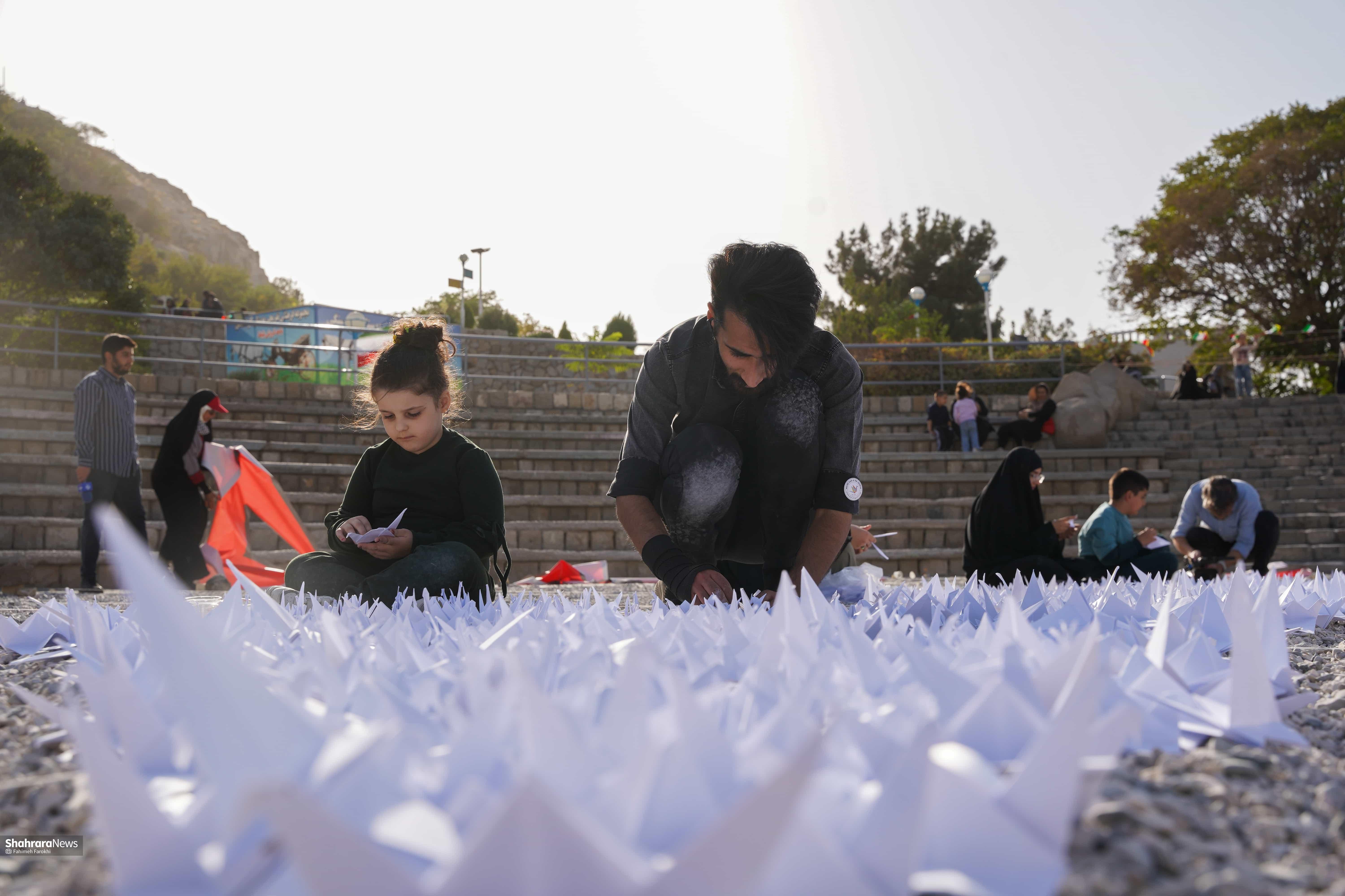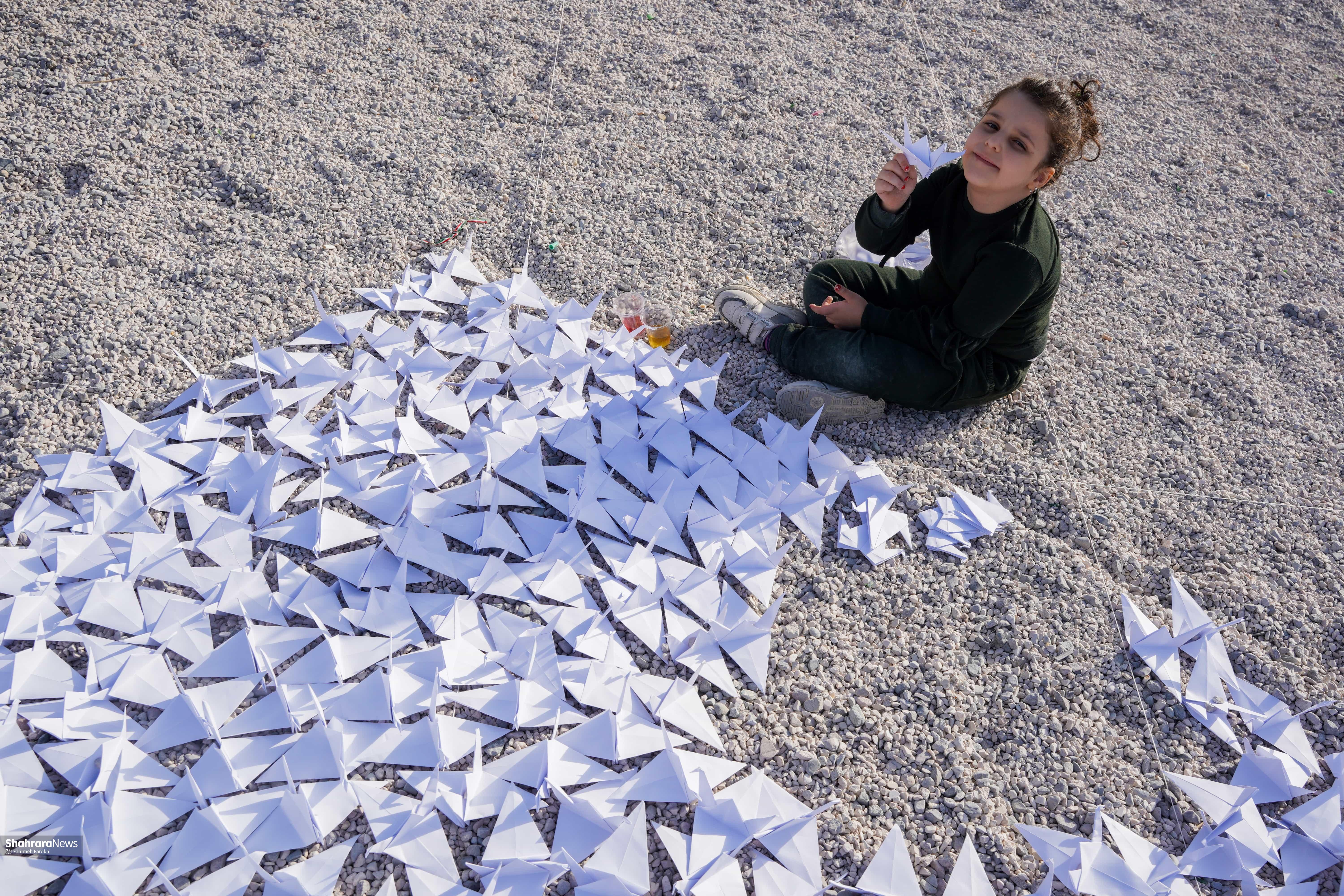 ۴هزار درنای کاغذی در بوستان کوهسنگی مشهد صدای فریاد مظلومیت کودکان غزه است