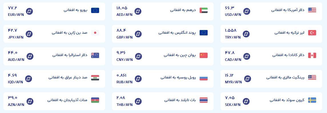 قیمت فعلی افغانی نسبت به هفته گذشته ۳.۹۵ درصد افزایش را نشان میدهد.