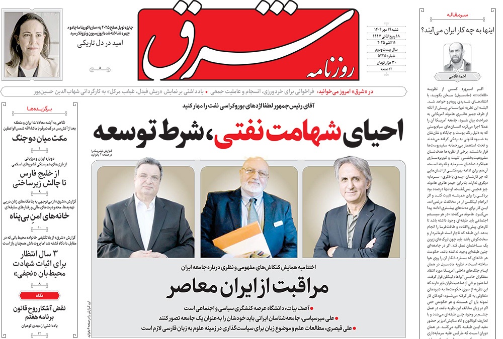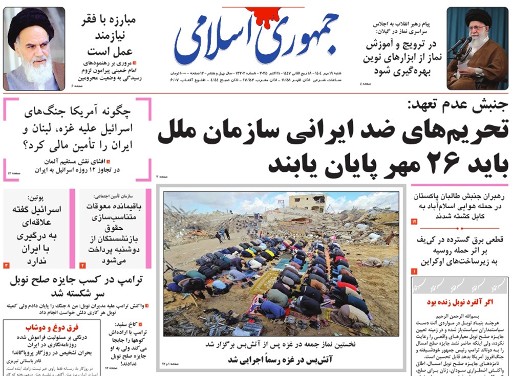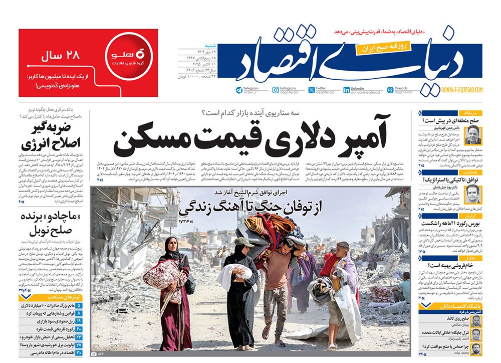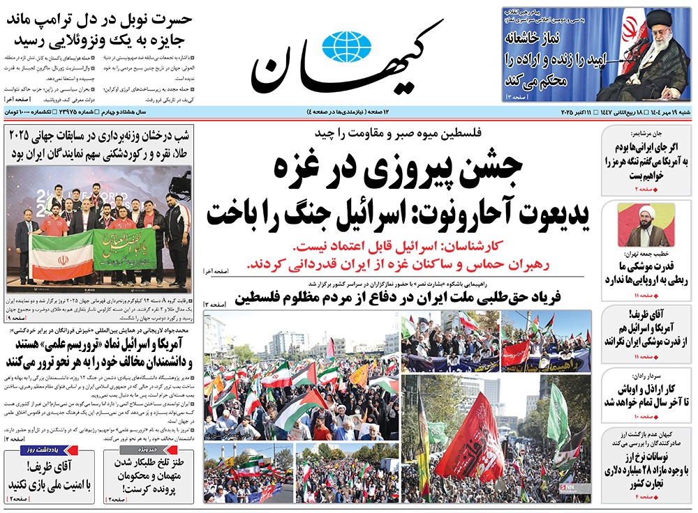 صفحه نخست روزنامه‌های کشور - شنبه ۱۹ مهر ۱۴۰۴