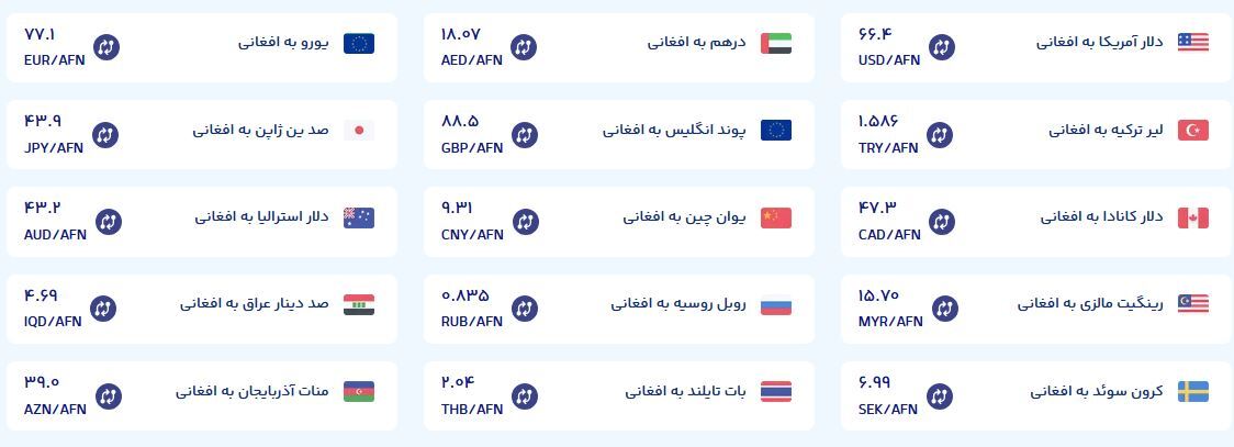 نرخ تبدیل ارز‌های مختلف به افغانی چنده؟