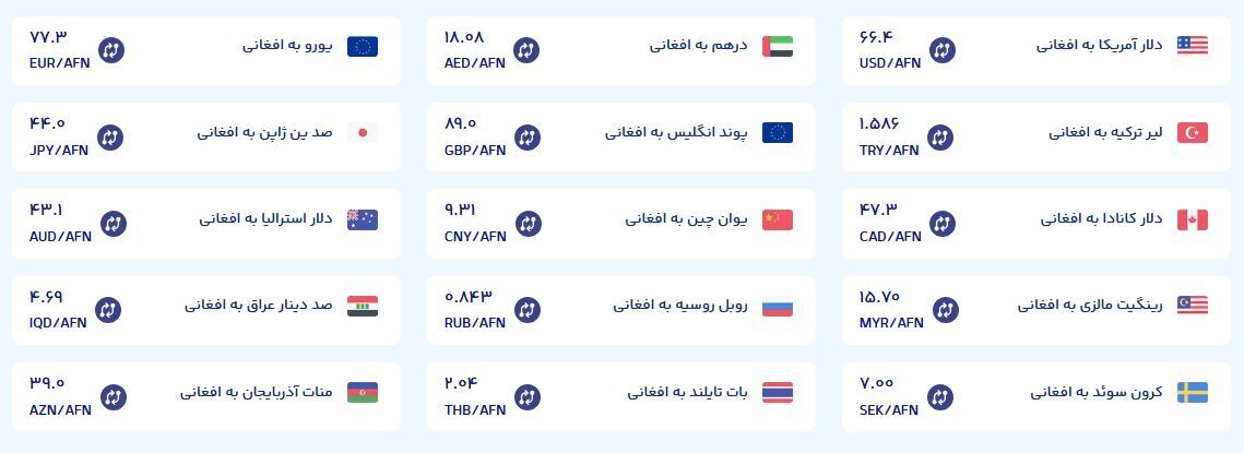 قیمت فعلی افغانی نسبت به هفته گذشته ۲.۰۷ درصد کاهش را نشان میدهد.
