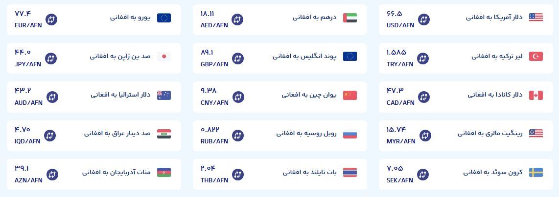 نرخ تبدیل ارز‌های مختلف به افغانی چنده؟