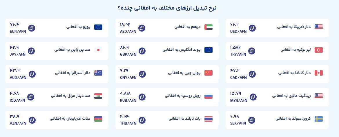 نرخ تبدیل ارز‌های مختلف به افغانی چنده؟