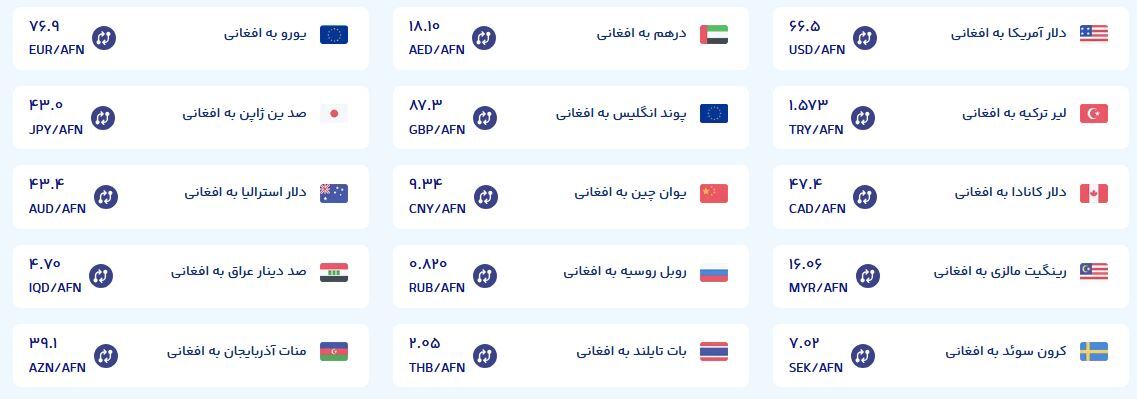 نرخ تبدیل ارز‌های مختلف به افغانی چقدر است؟