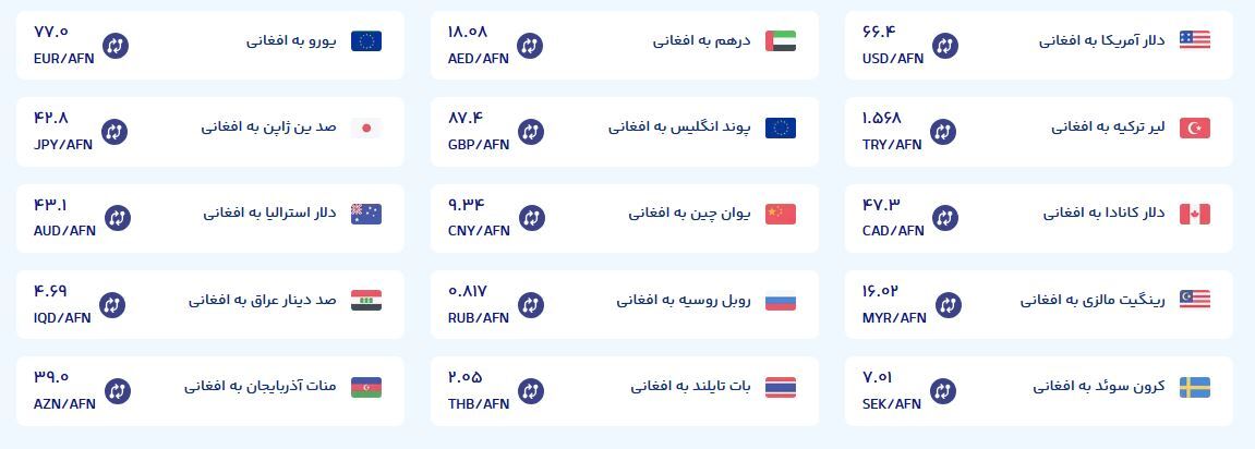 امروز سه شنبه ۲۷ آبان ۱۴۰۴ قیمت افغانی مانند دو روز گذشته ۱،۶۹۵ تومان میباشد.