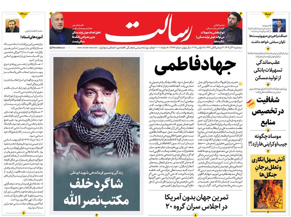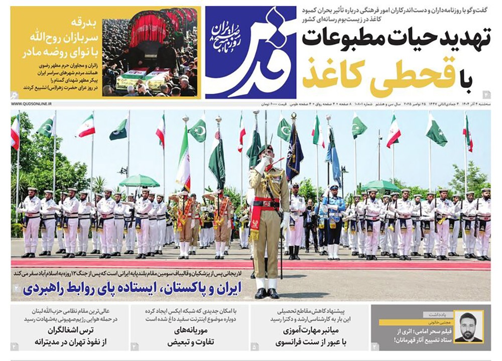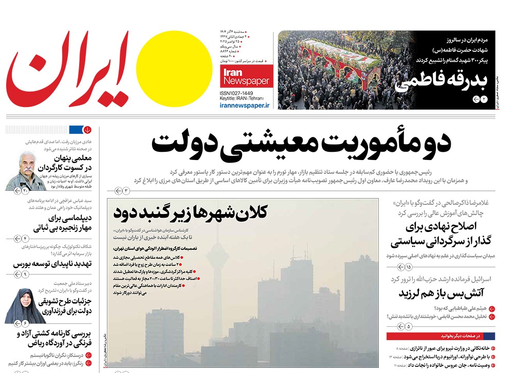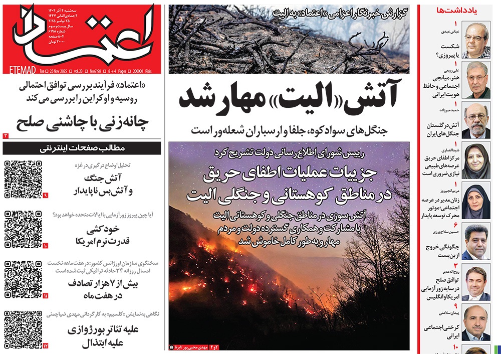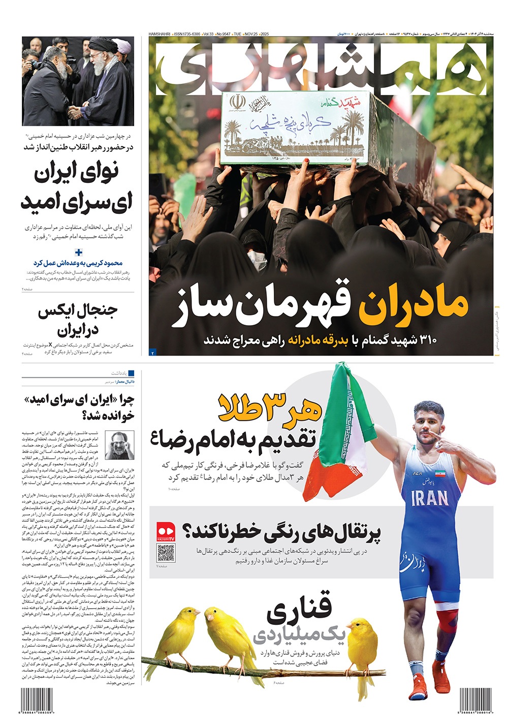 صفحه نخست روزنامه‌های کشور - سه‌شنبه ۴ آذر ۱۴۰۴