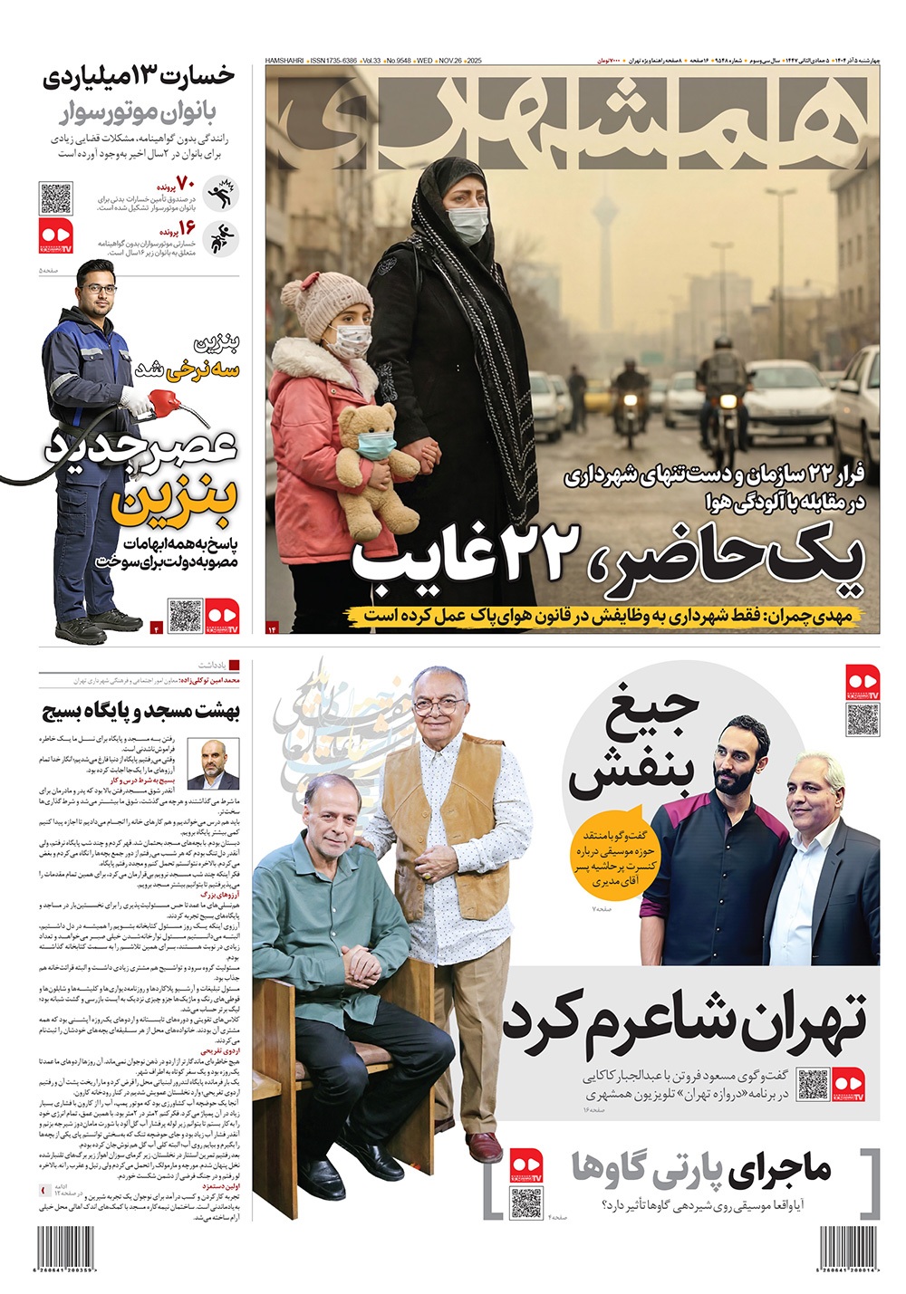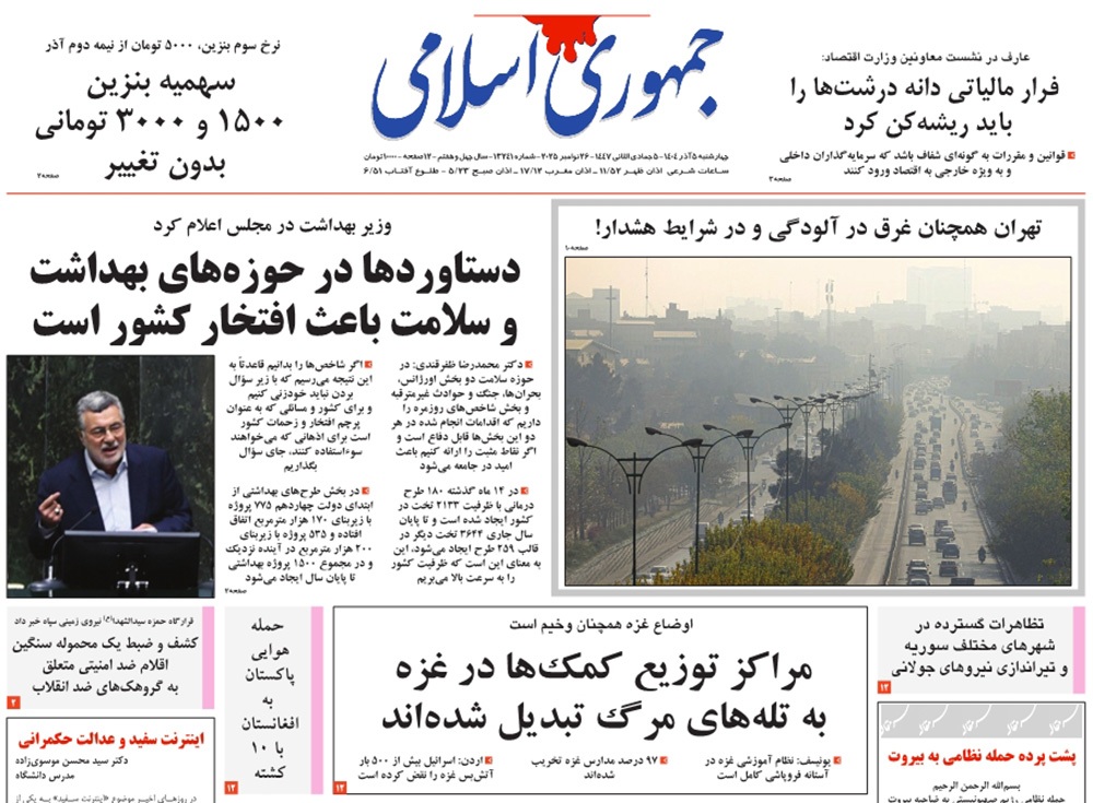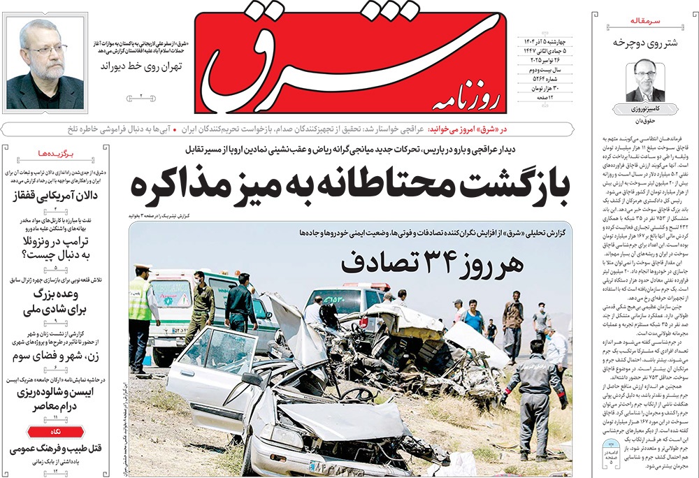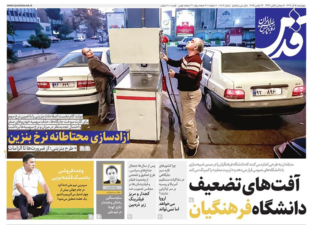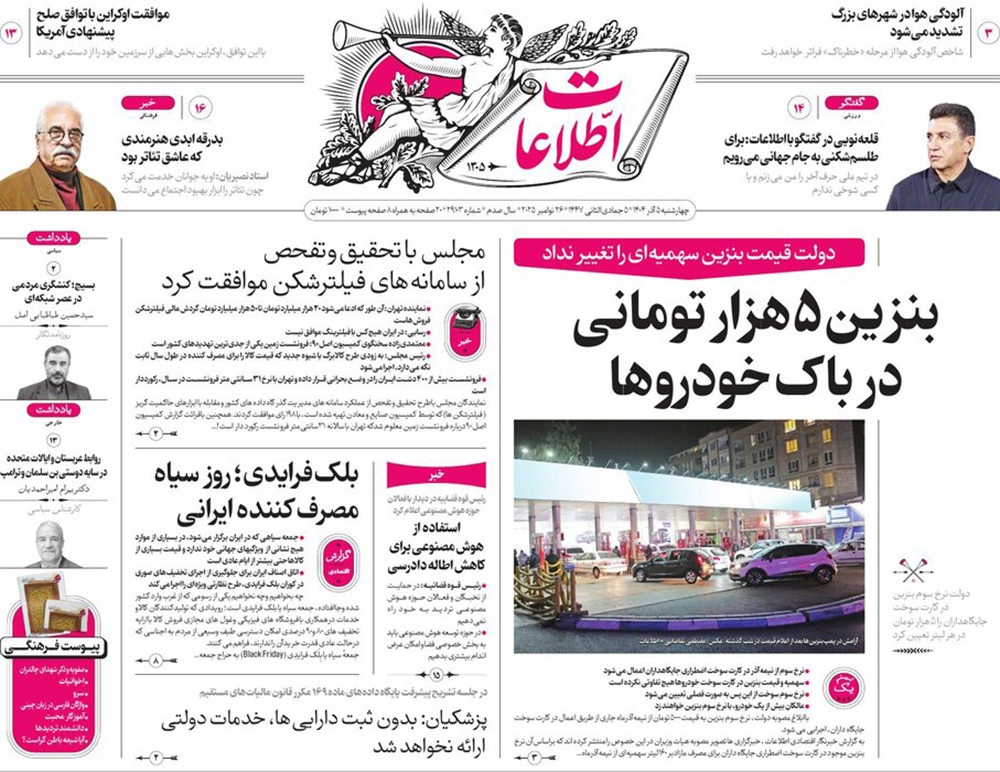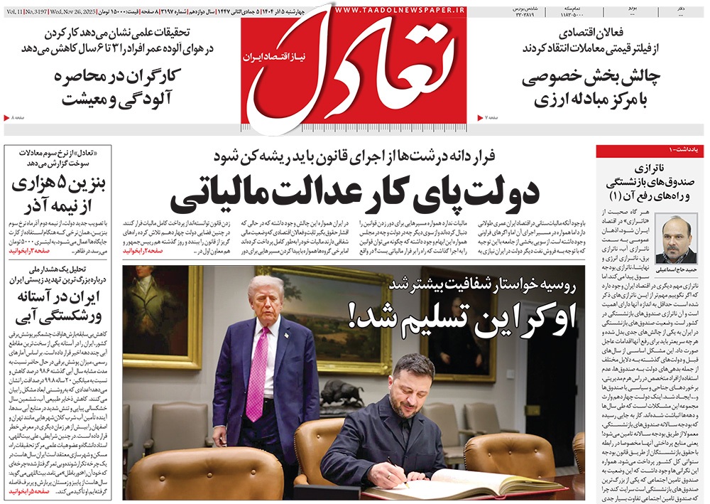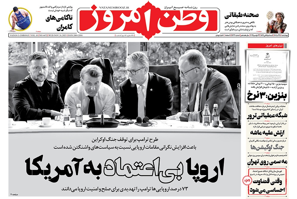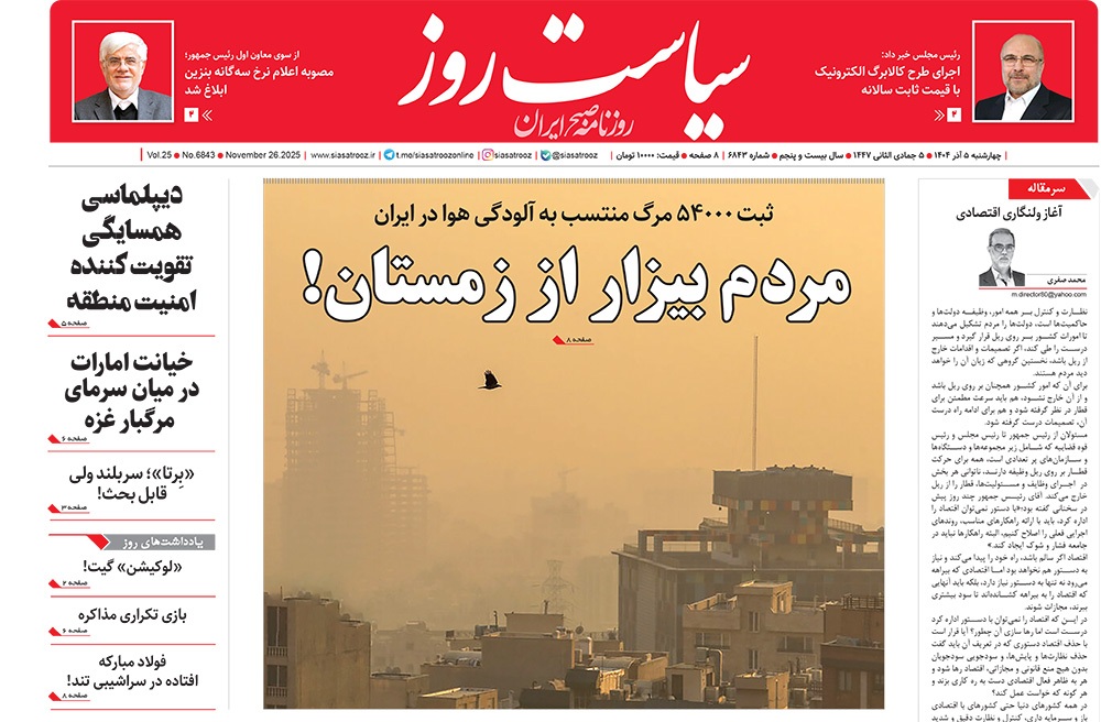 صفحه نخست روزنامه‌های کشور - چهارشنبه ۵ آذر ۱۴۰۴