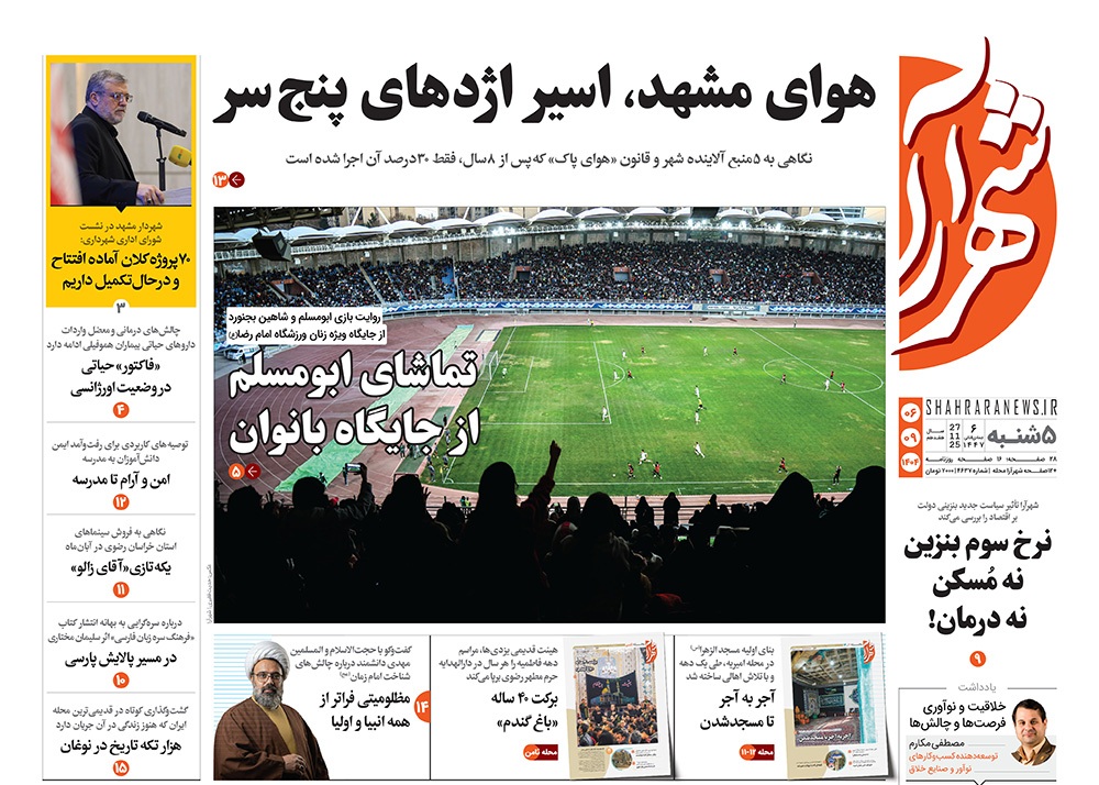 صفحه نخست روزنامه‌های کشور - پنجشنبه ۶ آذر ۱۴۰۴