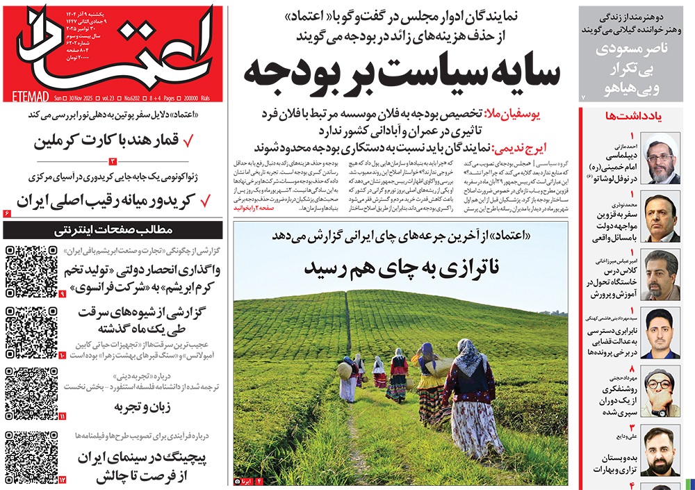 صفحه نخست روزنامه‌های کشور - یکشنبه ۹ آذر ۱۴۰۴