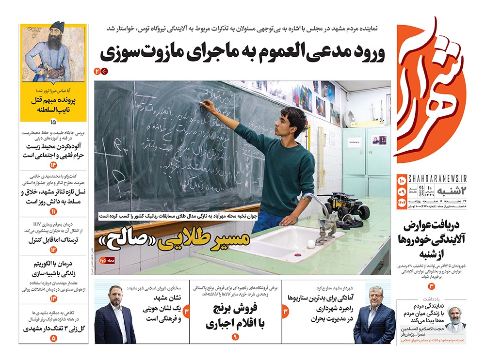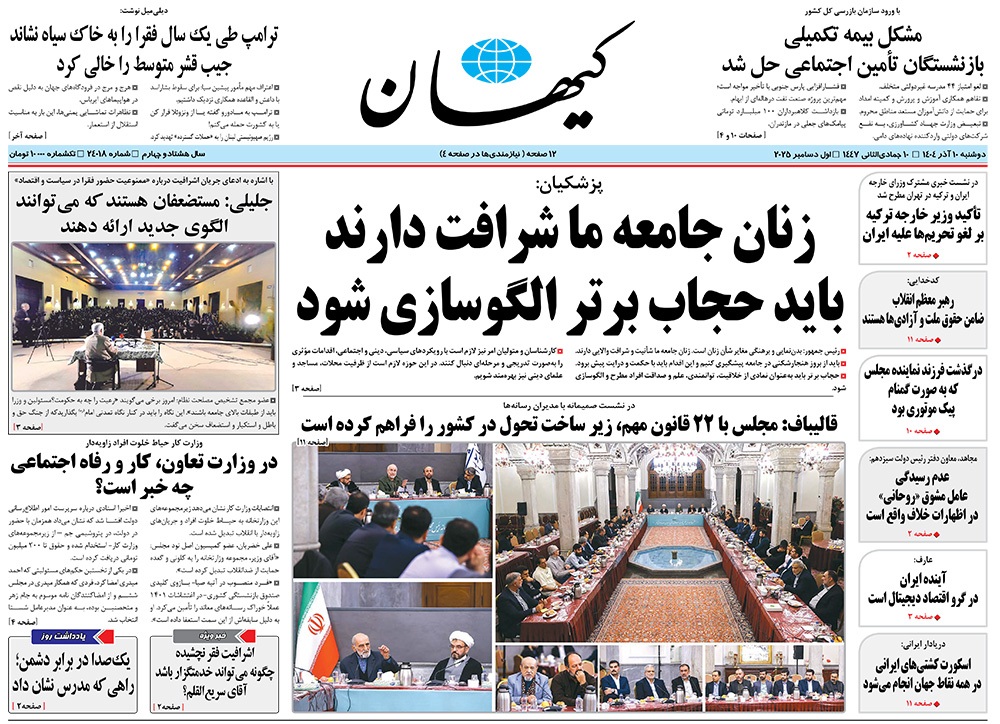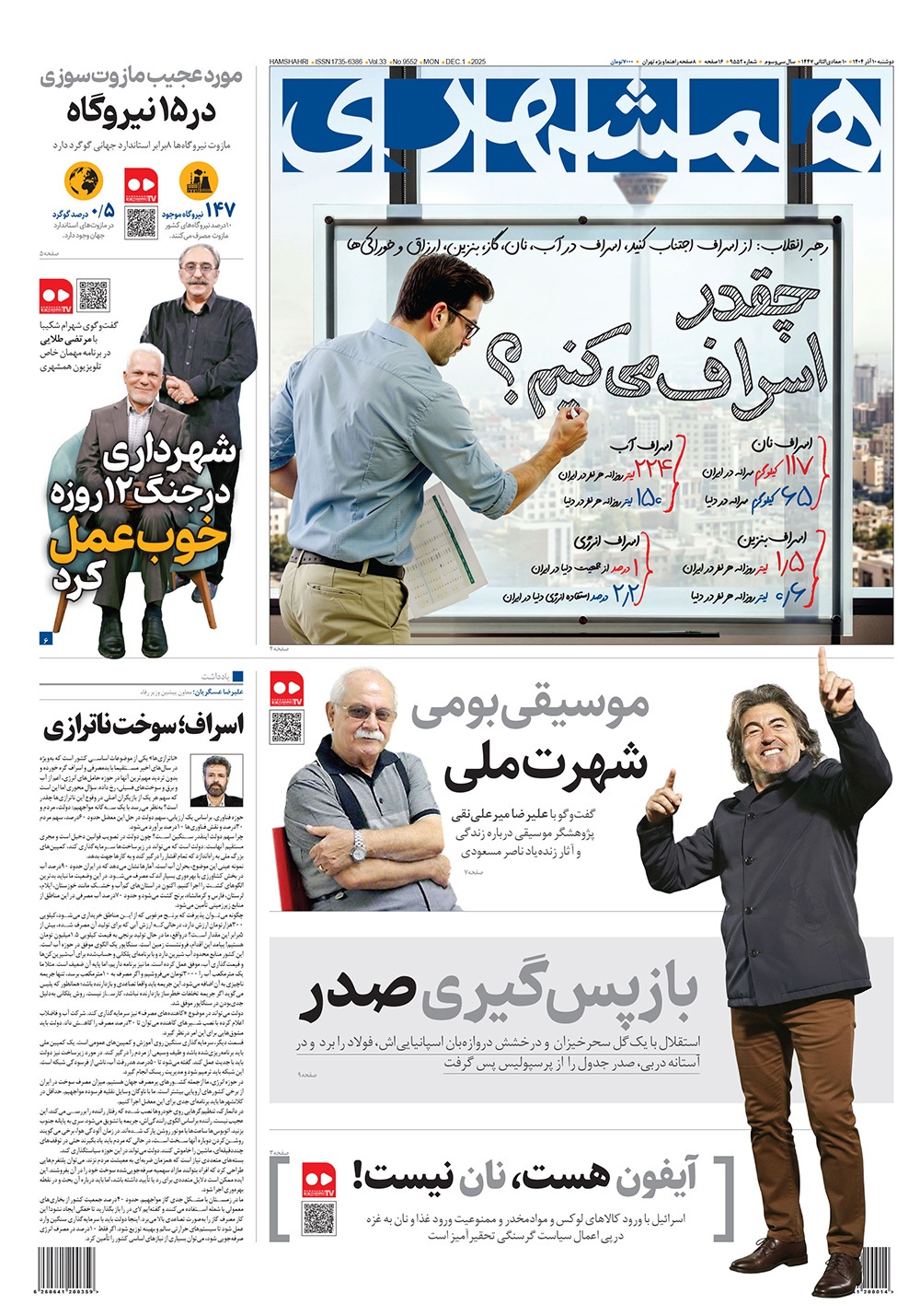 صفحه نخست روزنامه‌های کشور - دوشنبه ۱۰ آذر ۱۴۰۴