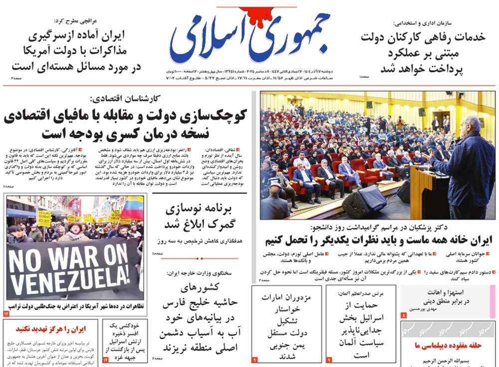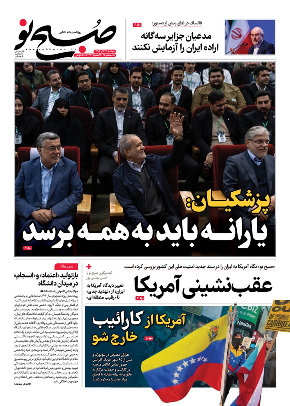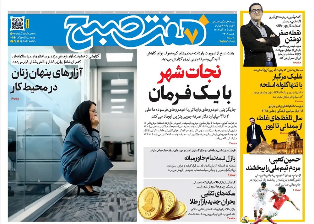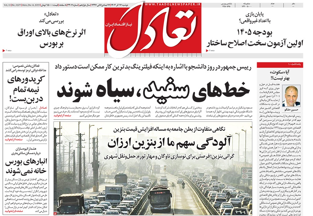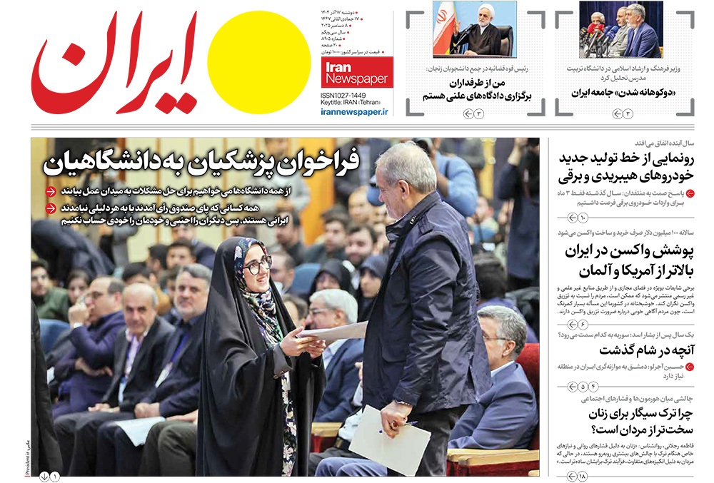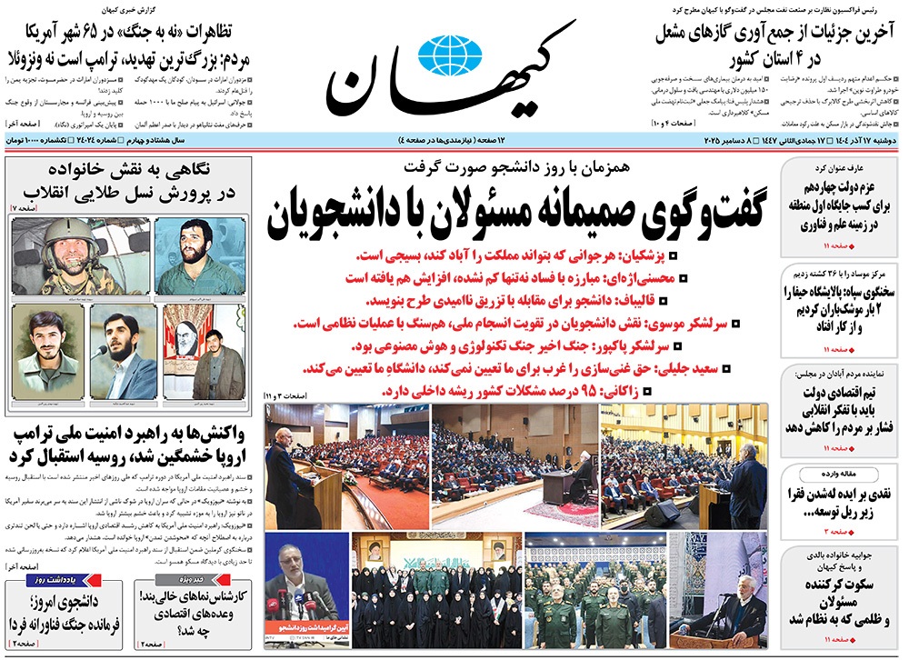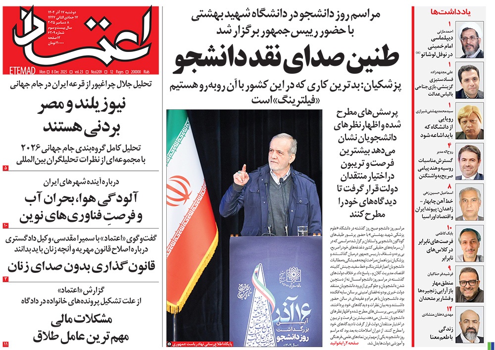 صفحه نخست روزنامه‌های کشور - دوشنبه ۱۷ آذر ۱۴۰۴