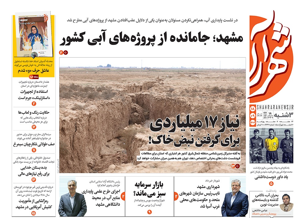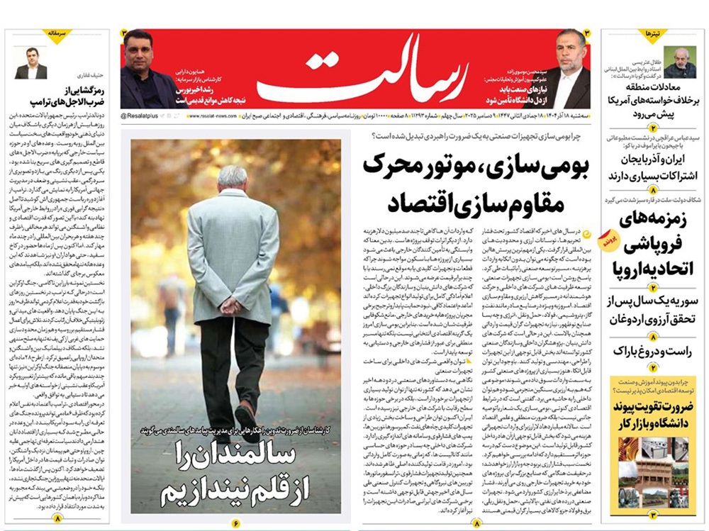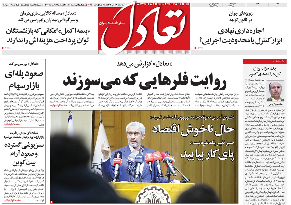 صفحه نخست روزنامه‌های کشور - سه‌شنبه ۱۸ آذر ۱۴۰۴