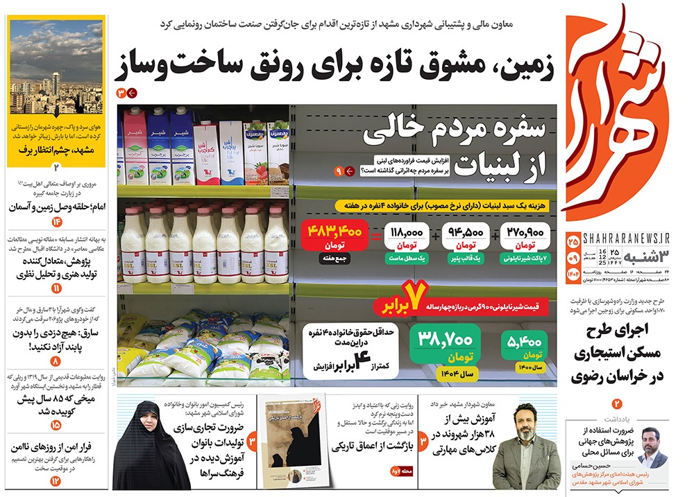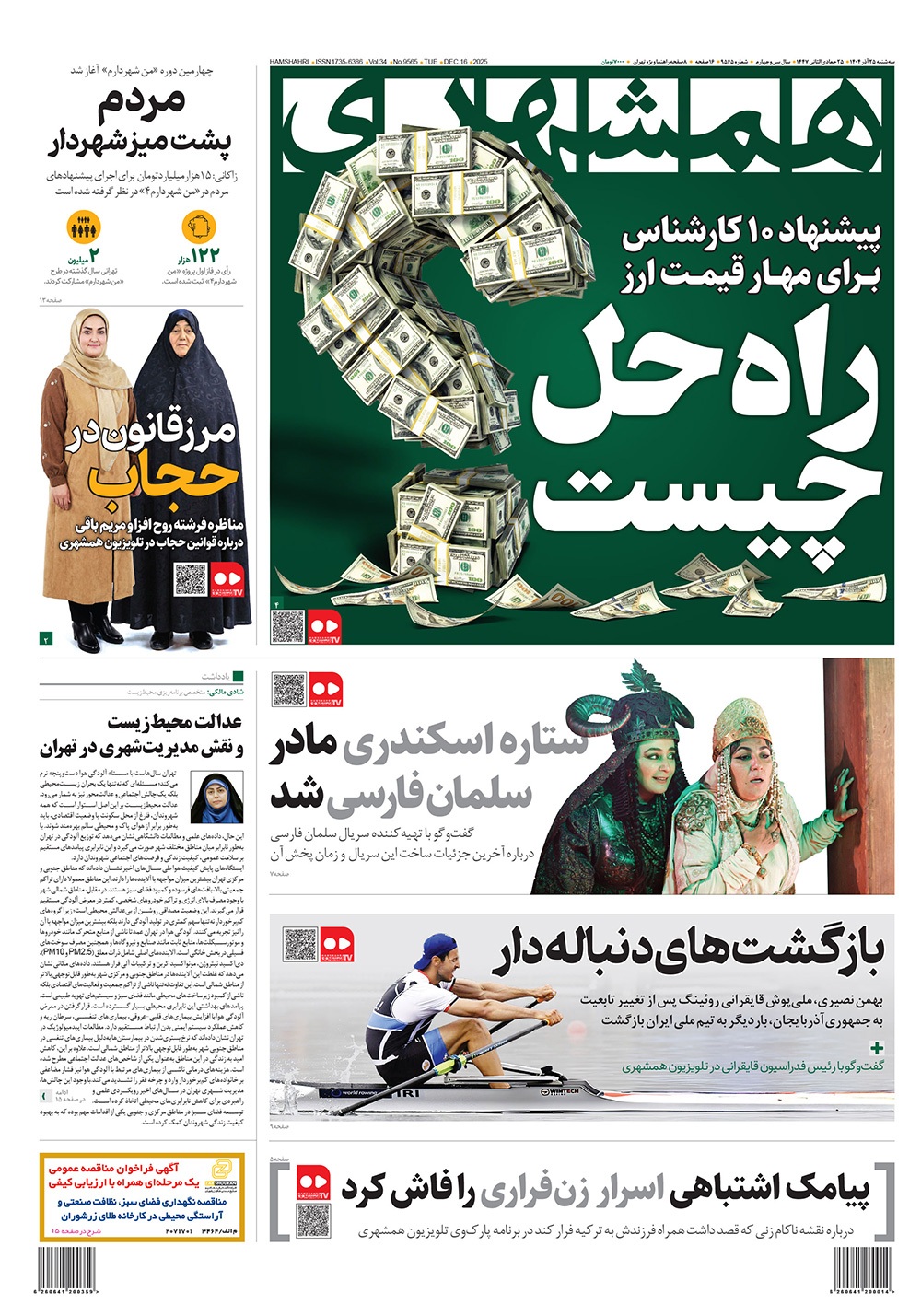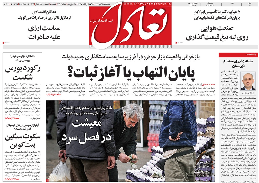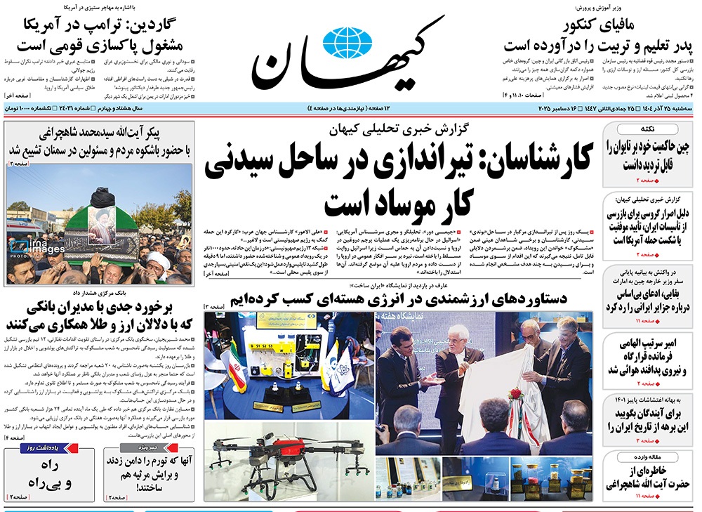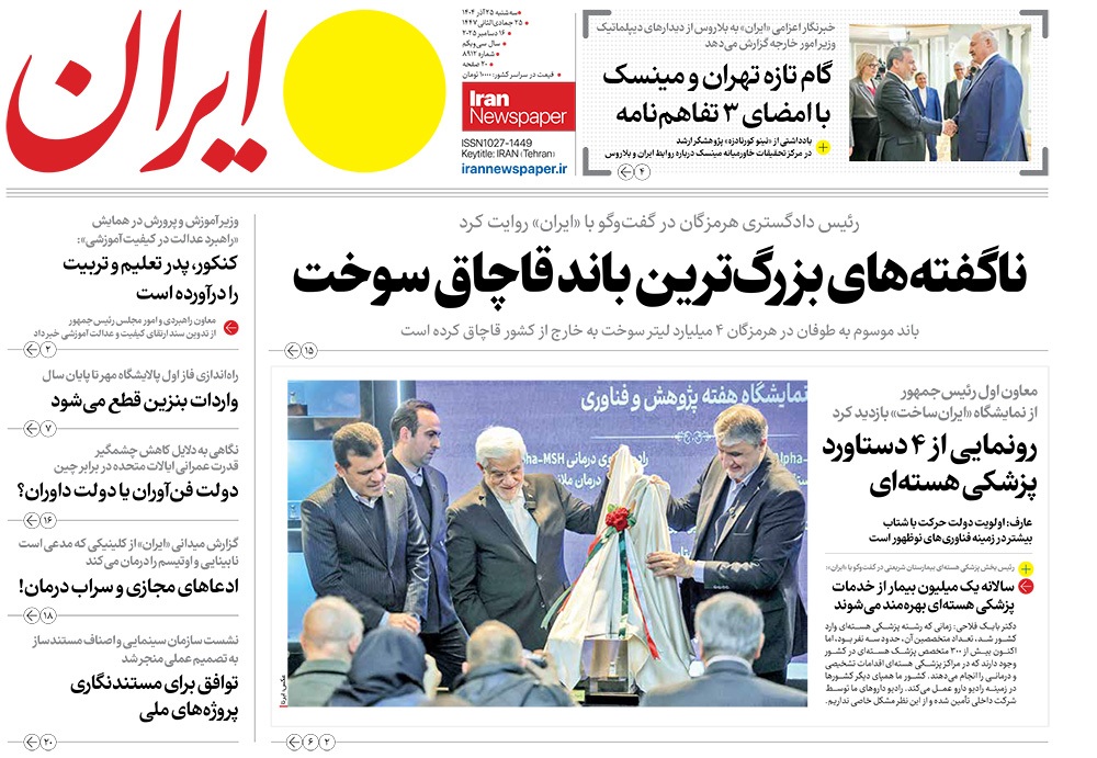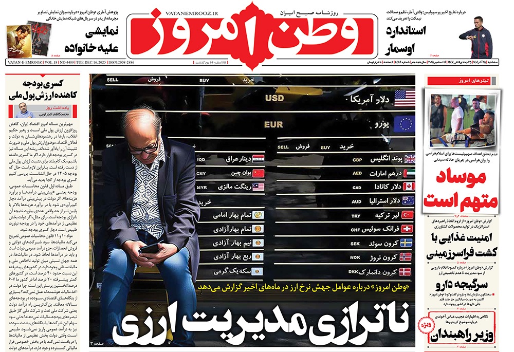 صفحه نخست روزنامه‌های کشور - سه‌شنبه ۲۵ آذر ۱۴۰۴