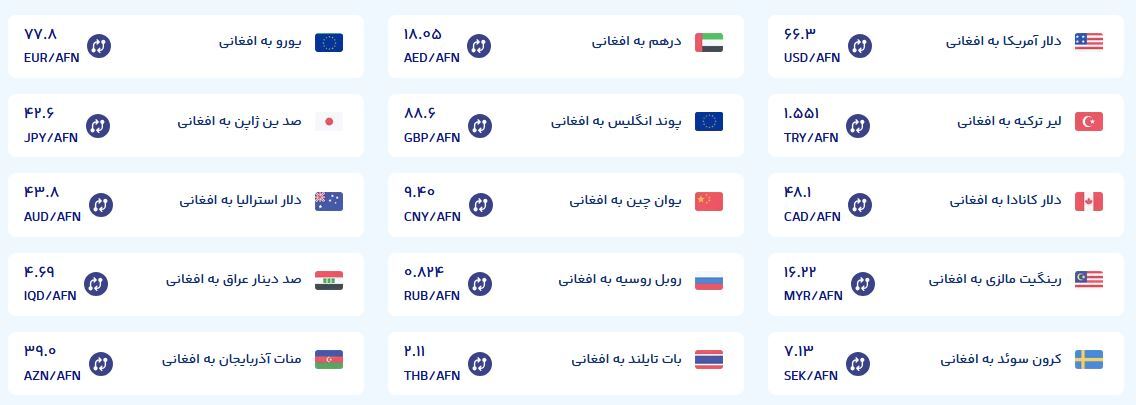 نرخ تبدیل ارز‌های مختلف به افغانی چقدر است؟