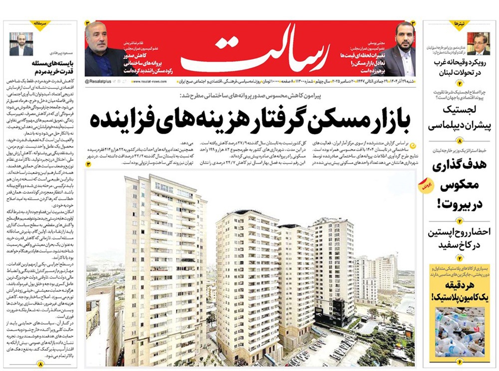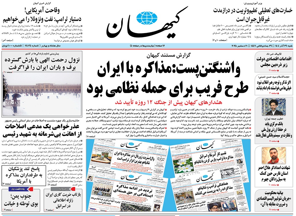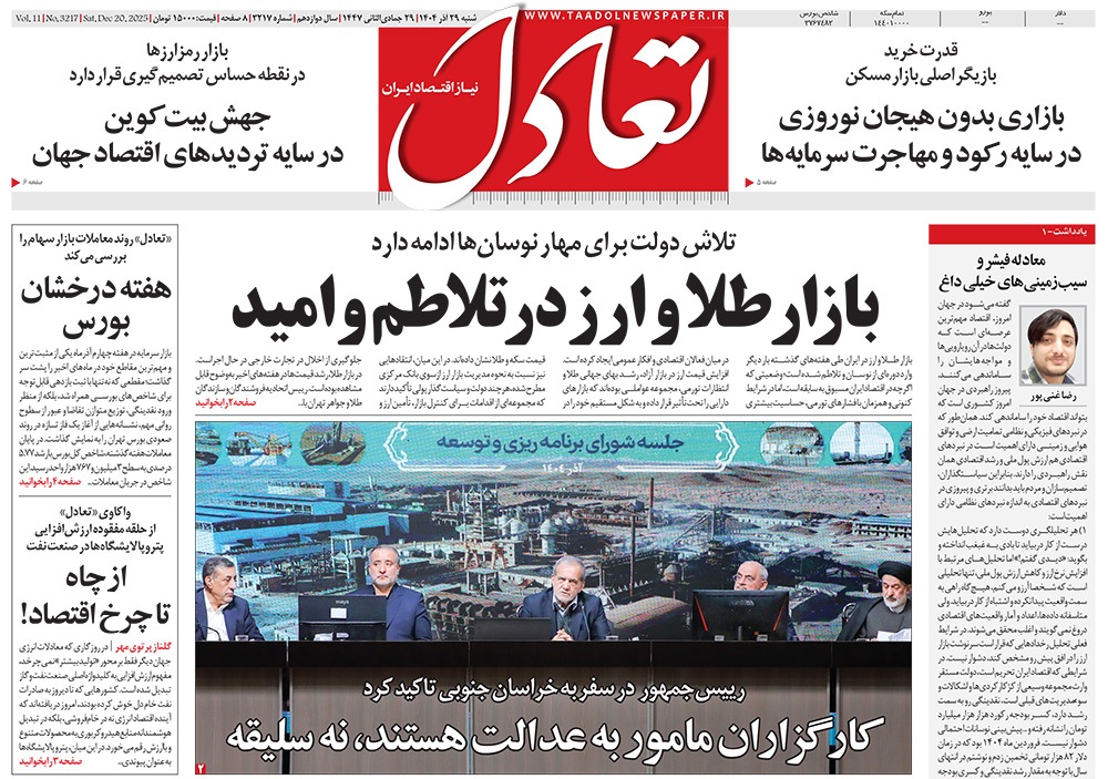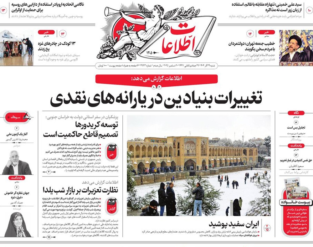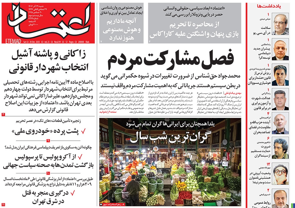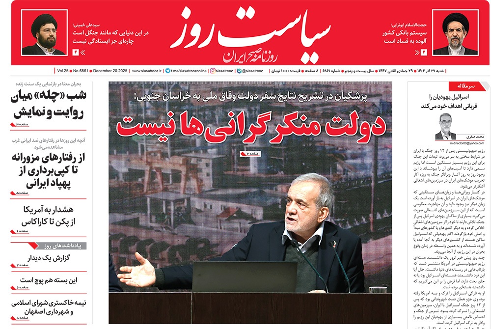 صفحه نخست روزنامه‌های کشور - شنبه ۲۹ آذر ۱۴۰۴