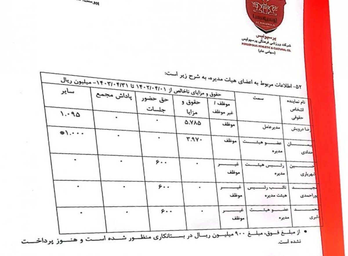 مبلغ دریافتی رضا درویش از باشگاه پرسپولیس لو رفت.